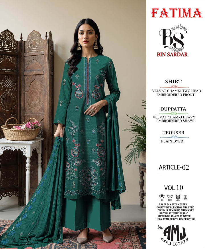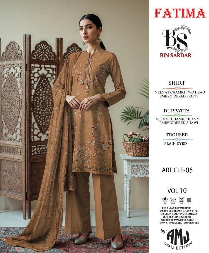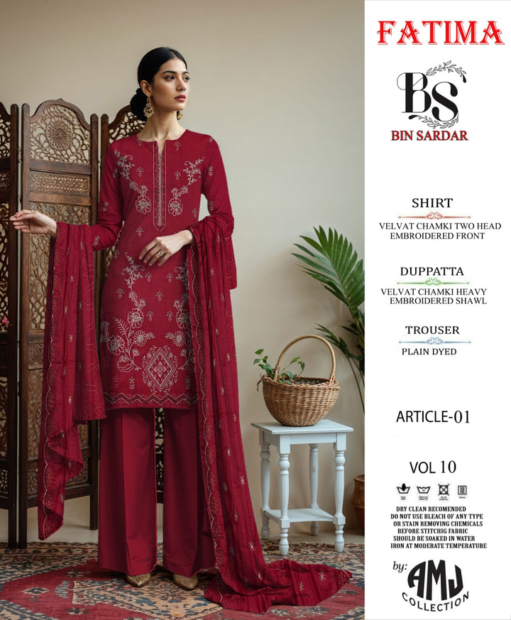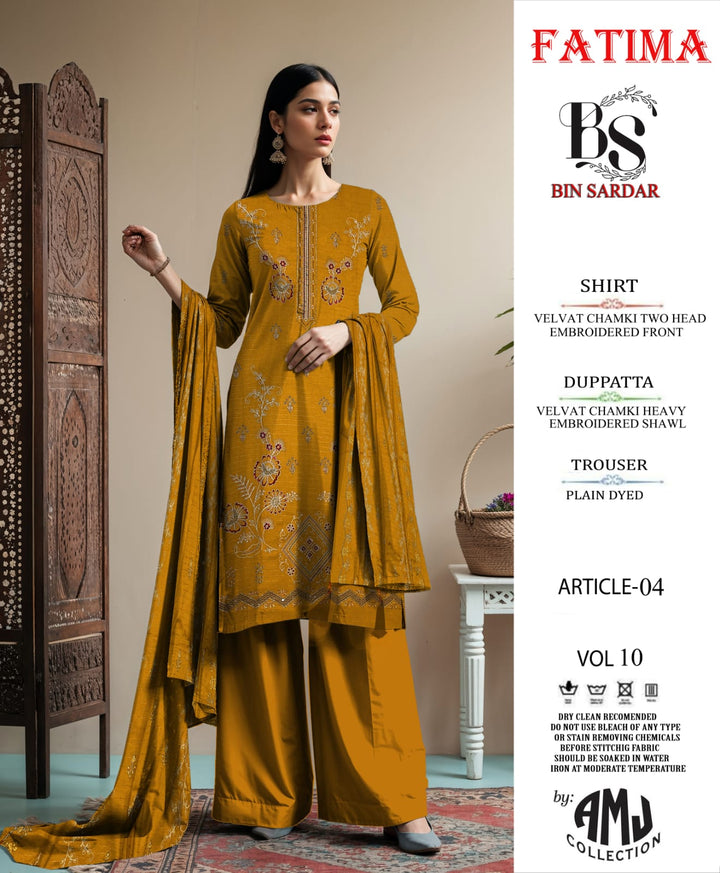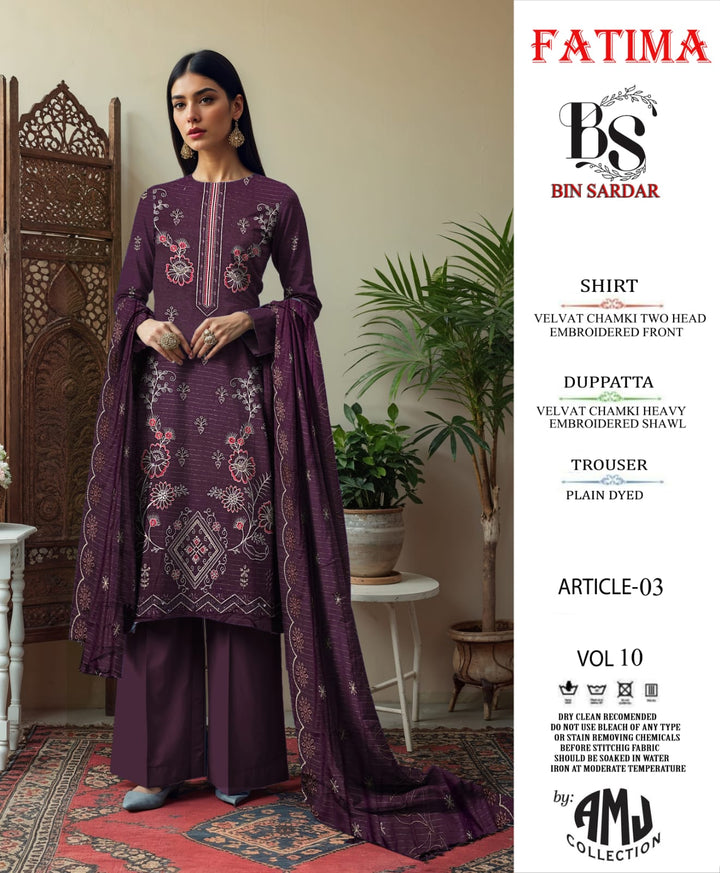 Bin Sardar 2 Head EMB Dhanak Velvet Chamki 3Piece Vol-10 (6 Suits Set)