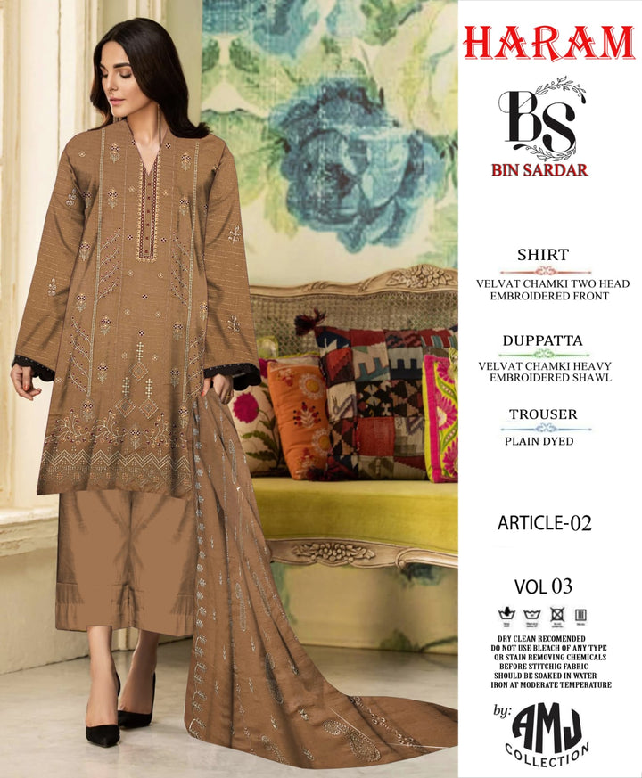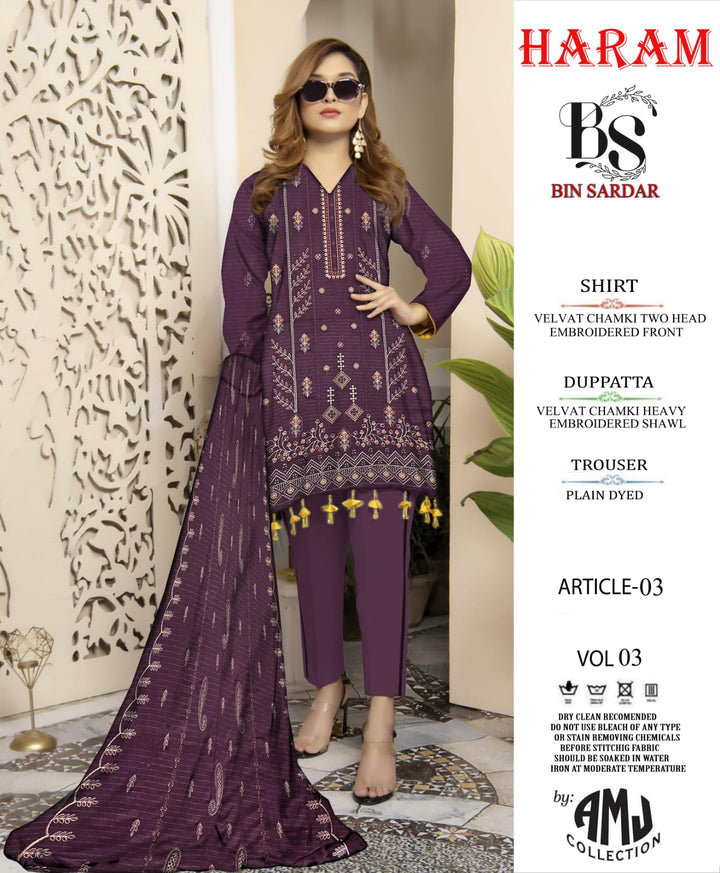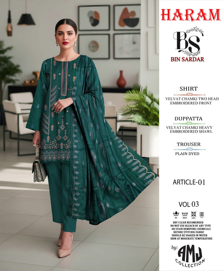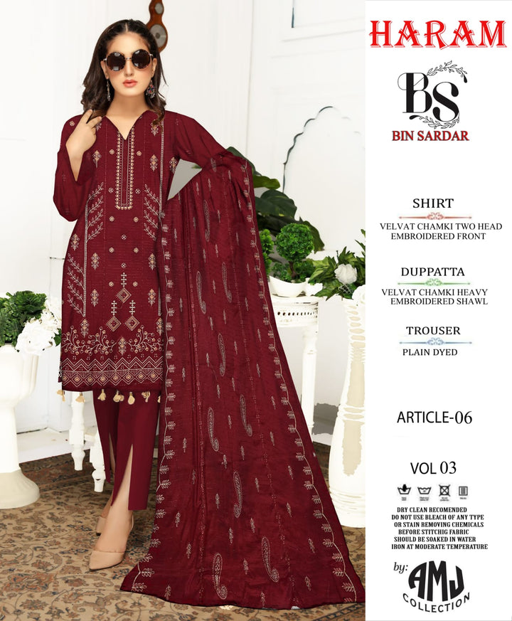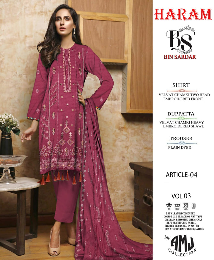 Bin Sardar 2 Head EMB Dhanak Velvet Chamki 3Piece Vol-3 (6 Suits Set)