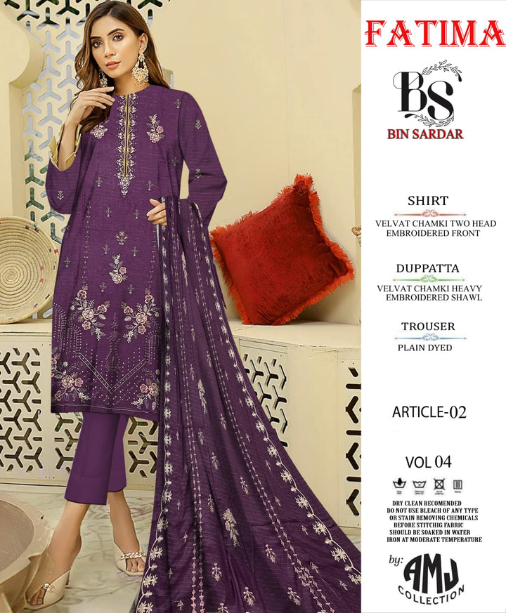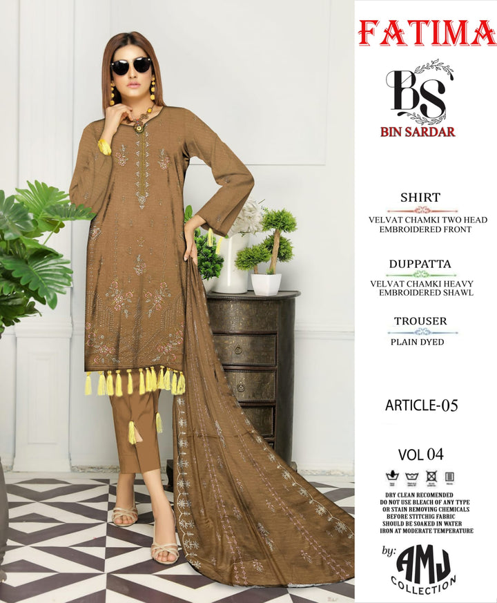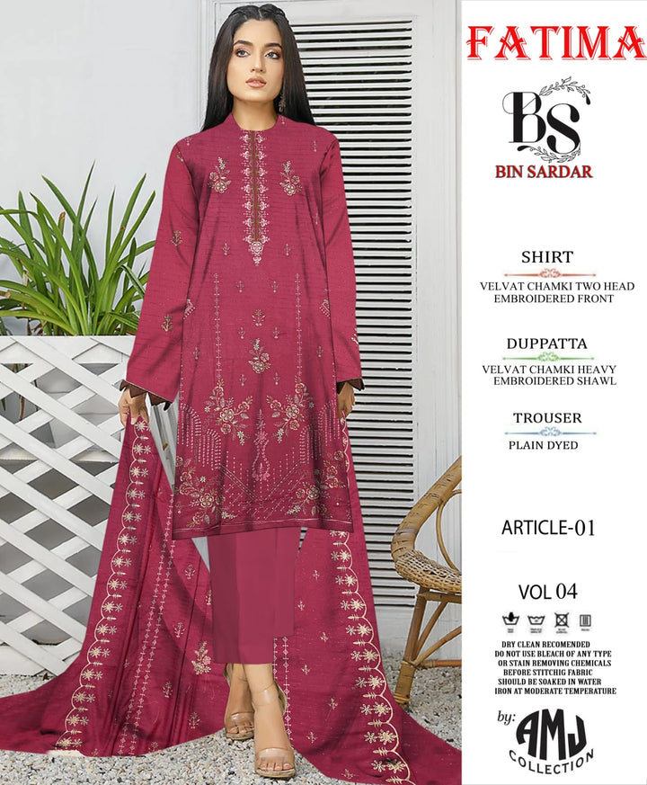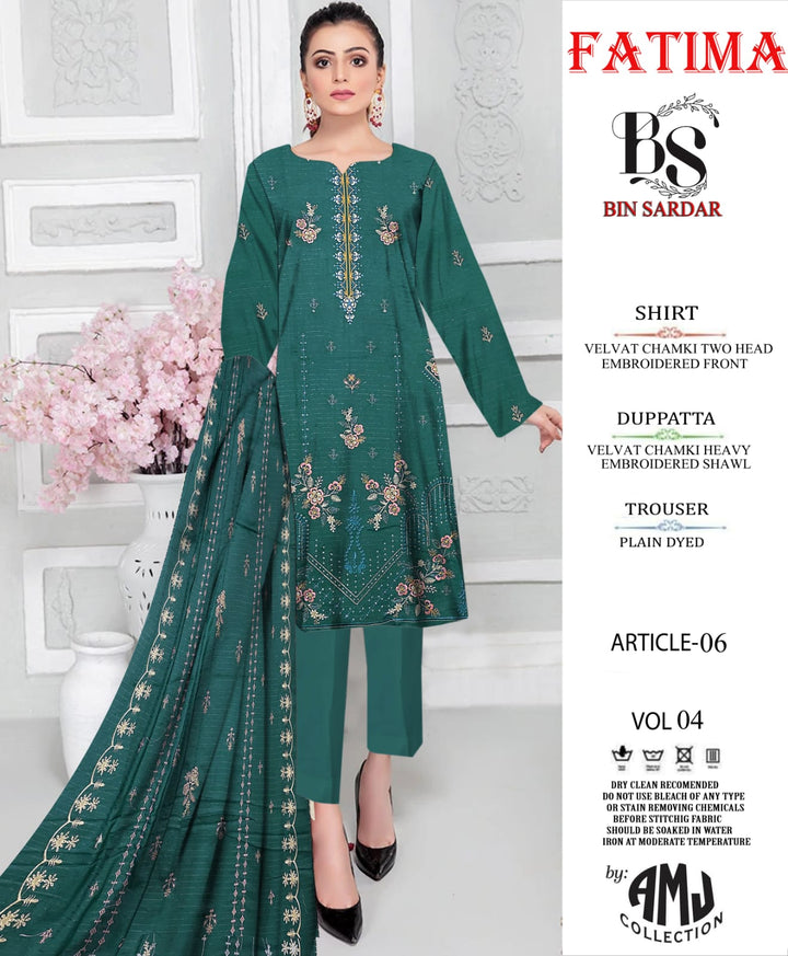 Bin Sardar 2 Head EMB Dhanak Velvet Chamki 3Piece Vol-4 (6 Suits Set)