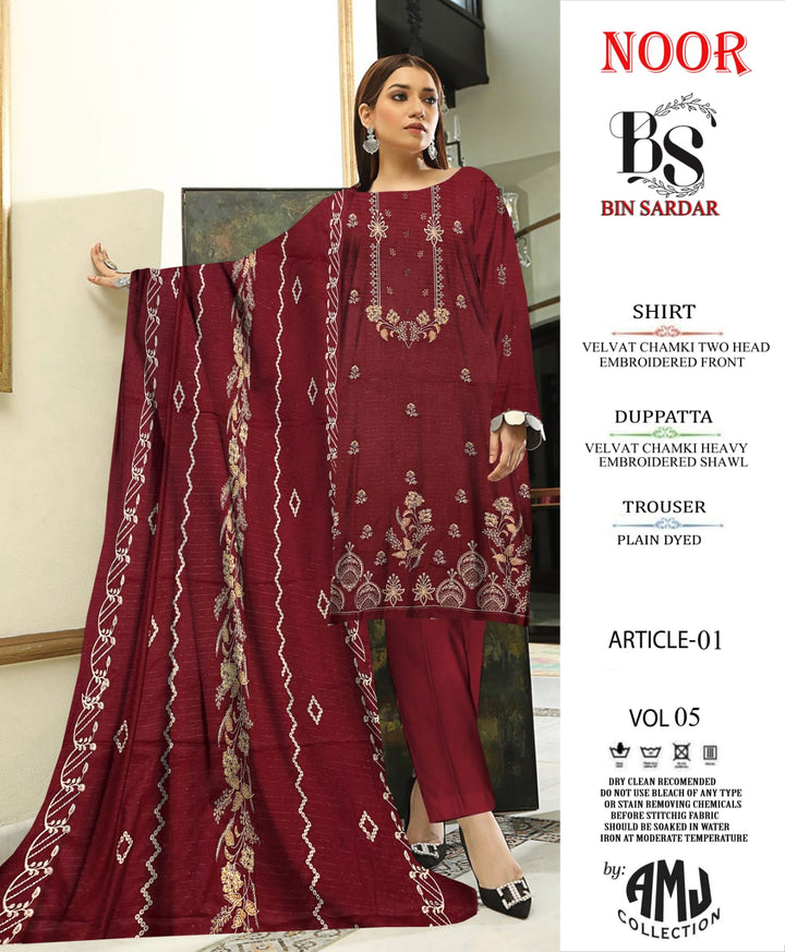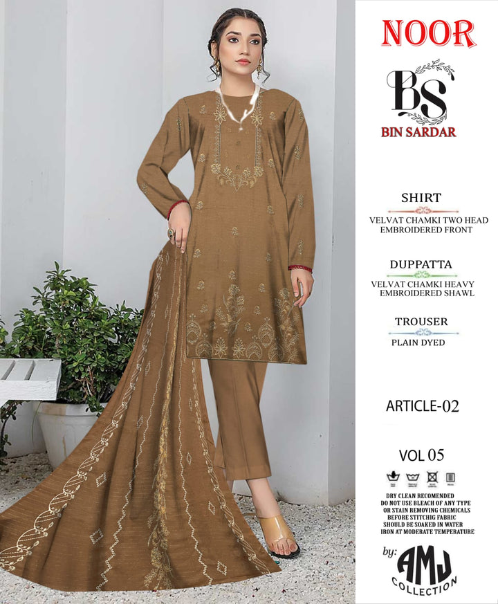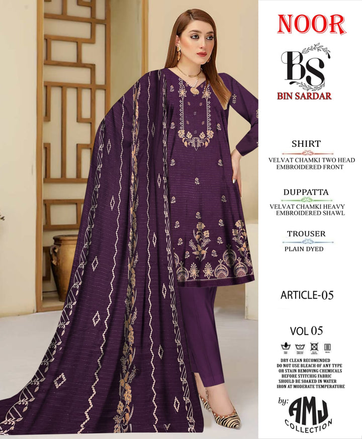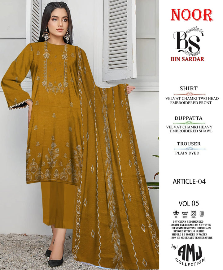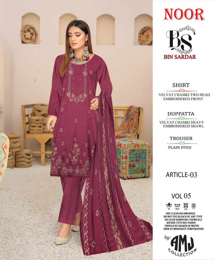 Bin Sardar 2 Head EMB Dhanak Velvet Chamki 3Piece Vol-5 (6 Suits Set)