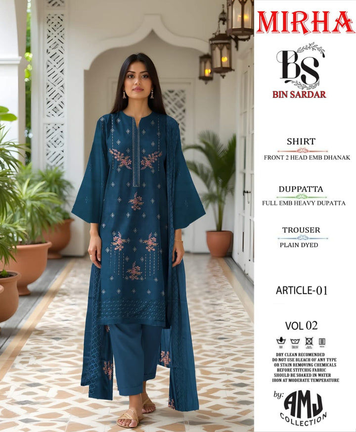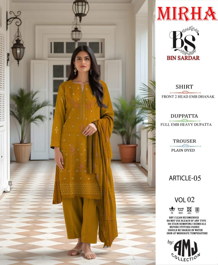 Bin Sardar 2 Head EMB Dhanak 3Piece Vol-2 (6 Suits Set)