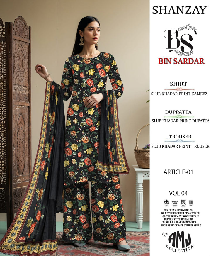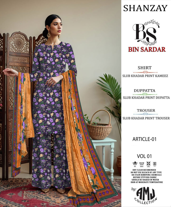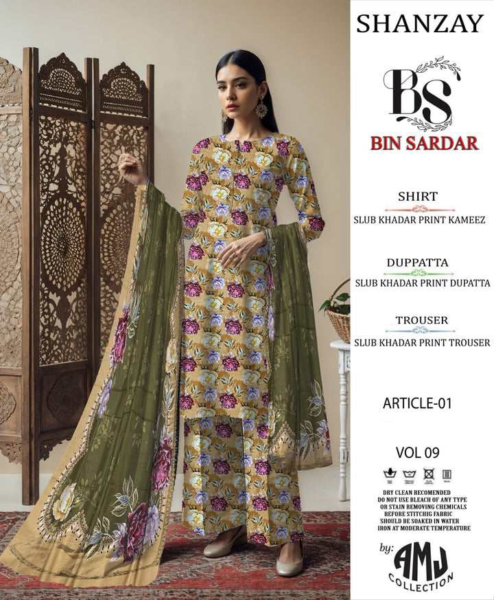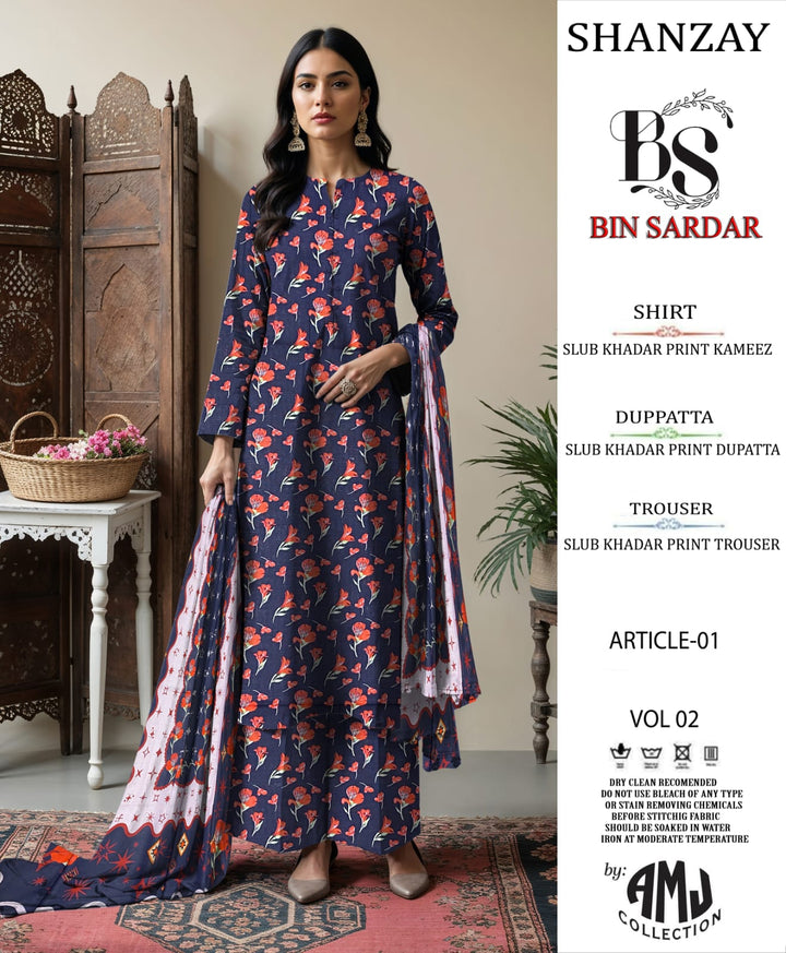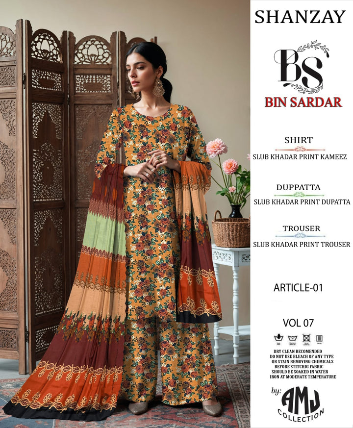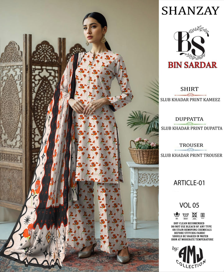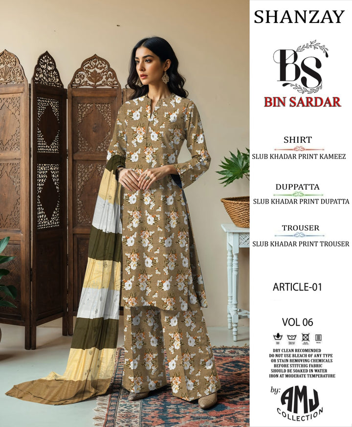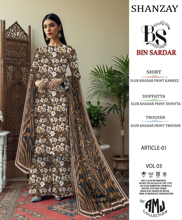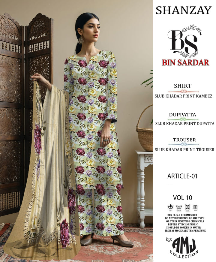 Bin Sardar Printed Slub Khaddar 3Piece Vol-3 (10 Suits Set)